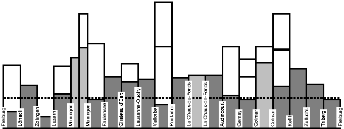 | Mo. 10.07. | Freiburg –> Lörrach (75 km, 450 Hm, 4½-5 h) | |||